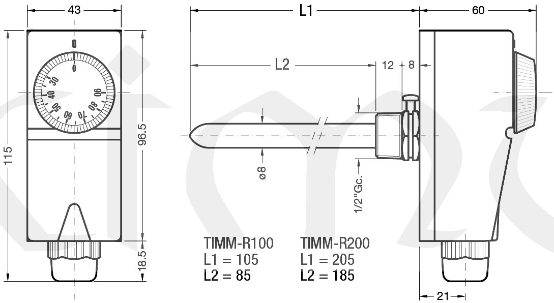 TIMM-R200, +30..90°C, stonek 200mm, G1/2"