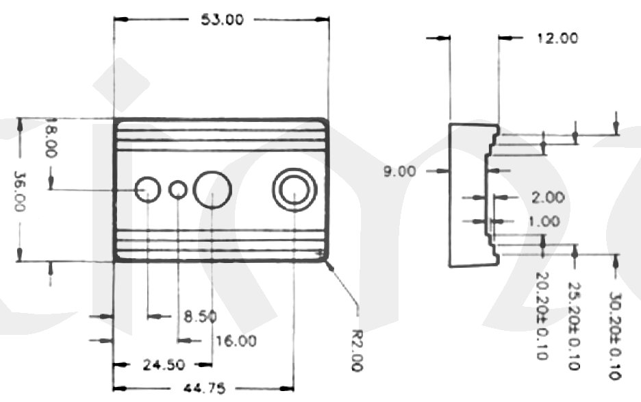 Rozměry: 35,5 x 52,5 x 12 mm (š x d x v)
