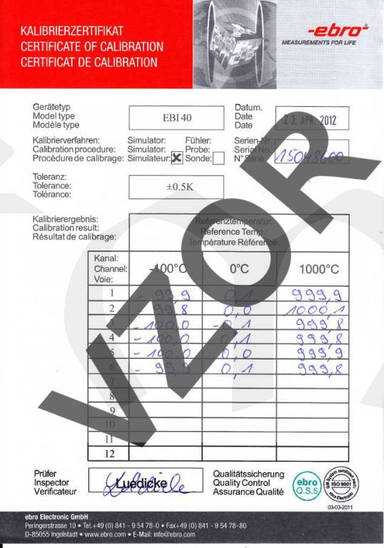 EBI-40 je vícekanálový datalogger použitelný především tam kde se pracuje s vysokými teplotami. To jsou místa jako trouby, pekárenské pece; ale také průmyslové oblasti, při vývoji produktů, atd.