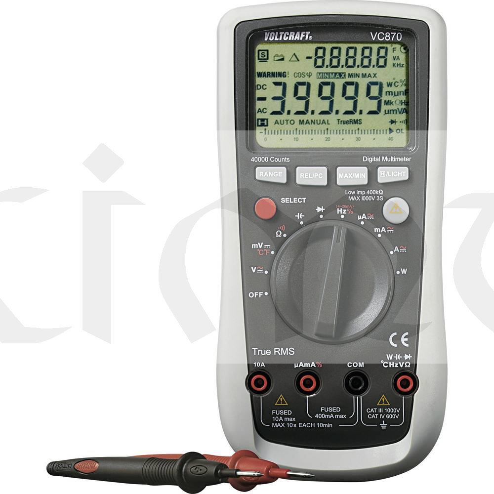 Nový multimetr od společnosti VOLTCRAFT®. Odolnost, spolehlivost, praktická výbava, ergonomický tvar, bezpečnost pro uživatele - to jsou atributy, jež specifikují tyto profesionální multimetry. I po stránce bezpečnosti se tento multimetr stává symbolem. Díky patentované konstrukci lze pouzdro pro výměnu baterie a pojistky otevřít pouze tehdy, když je přístroj odpojen od všech měřicích kabelů. Při vstupních napětích nad 30 V se na ukazateli objeví výstražný symbol. Odolné pouzdro s ochranným nástřikem z měkké gumy, výkonové pojistky na 1000 V, varovný tón v případě nesprávně připojených měřicích kabelů a přepínaní impedance, které stisknutím tlačítka redukuje vstupní odpor kvůli zabránění chybným měřením díky rozptylovým napětím, završují jedinečnou koncepci bezpečnosti. K výbavě série patří optoelektronické rozhraní. Přístroj je schválen pro měření v kategorii přepětí CAT IV 600V a zkoušen podle normy EN 61010. Měření teploty a skutečné efektivní hodnoty (True RMS) doplňují tuto výbavu. Ve VC 870 je dodatečně integrovaná funkce měření výkonu do 2500 W pro činný výkon, zdánlivý výkon a cosphi pomocí dodaného zásuvkového adaptéru.