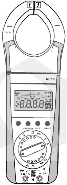 Klešťový přístroj NC 10 je určen pro měření střídavého proudu, napětí střídavého a tejnosměrného, teploty, odporu a kapacity.