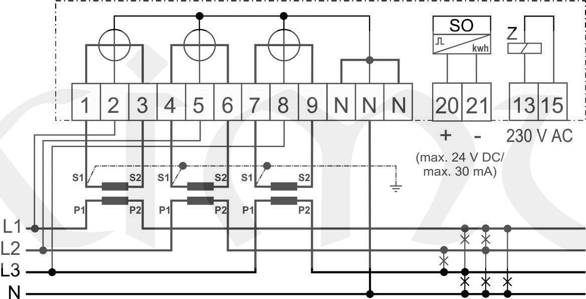 Třífázový, jednosazbový, digitální elektroměr pro nepřímé měření x/5A