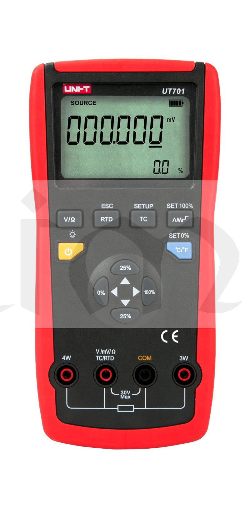 Přístroj UT701 je jednoúčelový velmi přesný profesionální kalibrátor pro testery termočlánků různých druhů. Je vhodný pro uživatele ke kalibraci a opravám různých teplotních testerů pomocí simulace termočlánků (10 typů termočlánků) nebo odporových teplotních detektorů (4 typy RTD) a funkcí výstupu napětí / odporu (ručně , nebo automaticky krokově měnitelných). Snadno ovladatelné klávesy, volitelné kroky a výstupy rampy zvyšují efektivitu a přesnost operací. Je vybaven nastavitelným podsvícením LCD, automatickým vypínáním, dvoubarevným injekčním plastovým pouzdrem a odolností proti pádu z výšky 1 m. Automatický test kalibrátoru a displeje při zapnutí přístroje. Nastavitelné podsvícení displeje. Možnost tří nebo čtyřvodičového měření termočlánků. Manuální nebo automatické simulace studeného konce termočlánku.