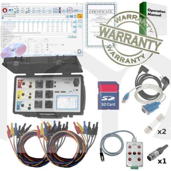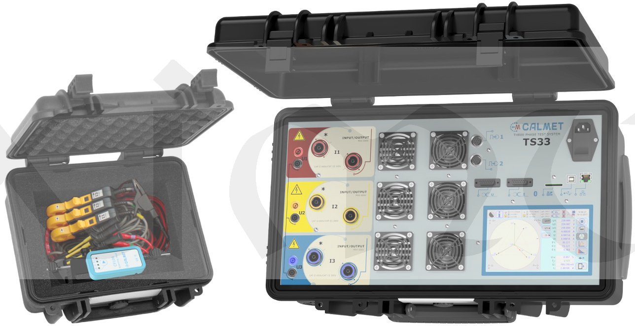 Třífázový plně automatický testovací systém TS33 s referenčním standardem a integrovaným zdrojem proudu a napětí používá velký 7palcový LCD displej s dotykovým panelem pro nastavení a prezentaci měření. TS33 je schopen uložit naměřená data na SD kartu, uložit snímek obrazovky BMP a vytisknout zprávu o měření přímo na Bluetooth tiskárně. Analyzátor lze také propojit pomocí USB, Bluetooth nebo LAN s PC počítačem nebo Tabletem a nastavením pomocí TS PC-Soft.