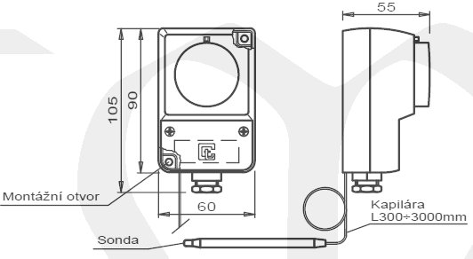 Termostat E1880, 0..+300°C; kapilára 2m, přepínací kontakt, s krytem IP40