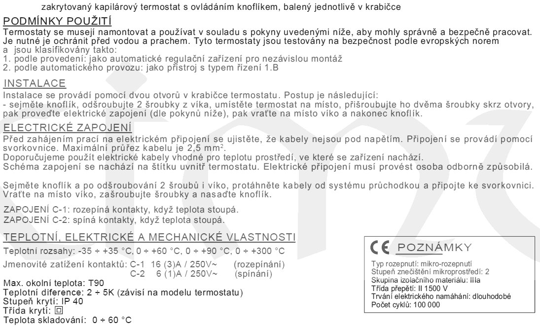 Termostat E1880, 0..+300°C; kapilára nerez 2m, přepínací kontakt, zakrytovaný krytí IP40,