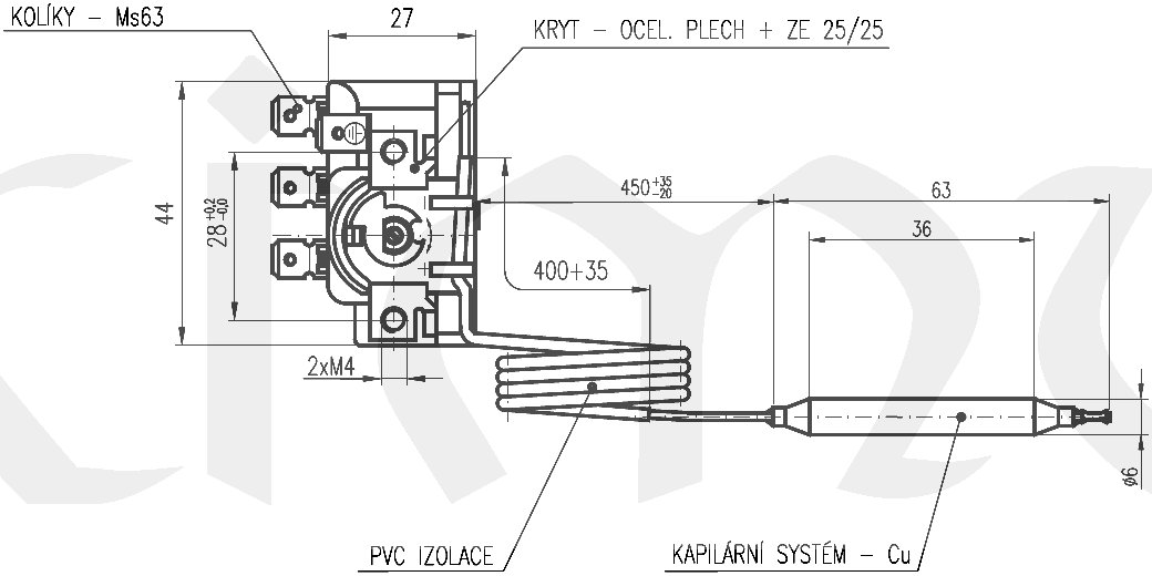 Kapilární regulátor (termostat) za normálních pracovních podmínek udržuje teplotu ve spotřebiči nebo jeho části, v mezích nastavených uživatelem automatickým vypínáním a zapínáním elektrického obvodu. Typické použití termostatu KR je při regulaci elektrických ohřívačů vody.