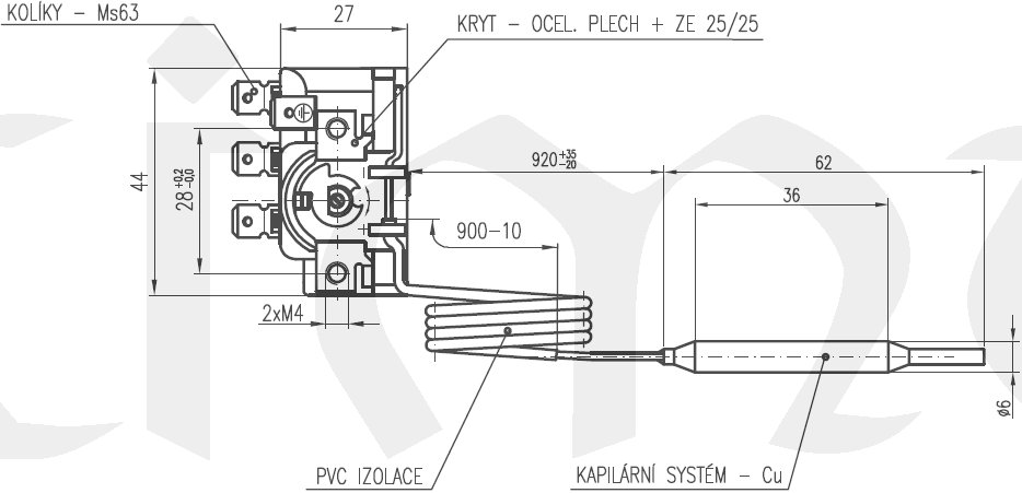 Termostat KR21, +35..+95°C, přepínací