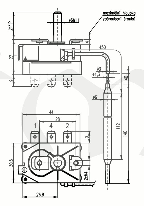 Po dohodě lze posunout regulační rozsah k nižší teplotě, dodávat RT v provedení přepínacím nebo v provedení 8803.02U s vývody otočenými o 90° (úhlové provedení - viz náčrt). Další informace je možné obdržet přímo ve výrobním závodě. Výrobek je certifikován VDE.