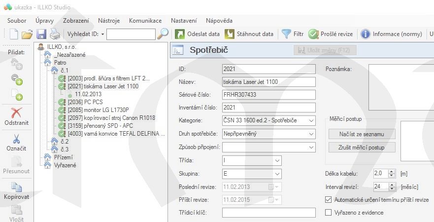 Pro usnadnění a zvýšení produktivity práce při vykonávání revizí elektrických spotřebičů je k přístroji REVEXmax dodáván i PC software SWillkostudio určený k vedení databáze spotřebičů, vyhodnocování jejich kontrol a tisku protokolů o provedených kontrolách (obr. 3).