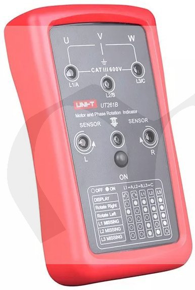 UT-261B se používá k určení sledu fází, chybějící fáze a otáčení motoru. UT261B měří střídavé napětí 90 ~ 600V. Může pracovat v kmitočtovém pásmu od 15 ~ 400Hz. Je odolným zařízením, které vydrží náraz z výšky 2 metrů.