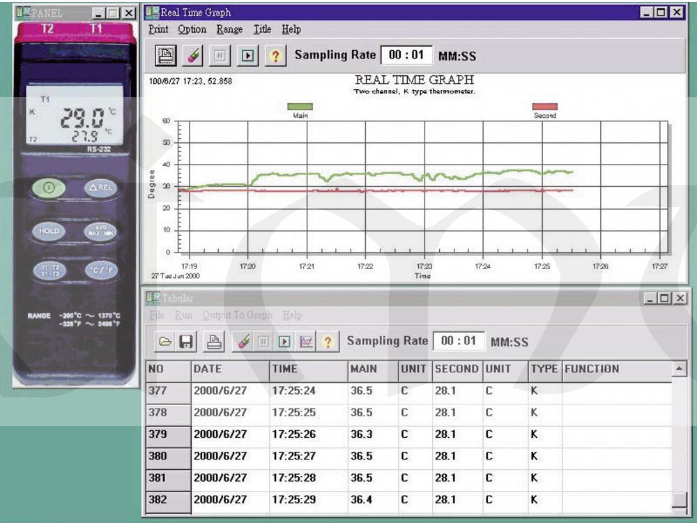 Teploměr profesionální řady s rozsahem měření -200 až +1370 °C s velmi vysokou přesností měření splní i ty nejvyšší profesionální požadavky. Přístroj je vybaven rozhraním RS-232, díky kterému můžete s dodaným softwarem přenášet data do svého počítače a zpracovávat je. K dlouhodobému sledování výsledků měření slouží integrovaná datová paměť (datalogger) až pro 16000 naměřených hodnot.