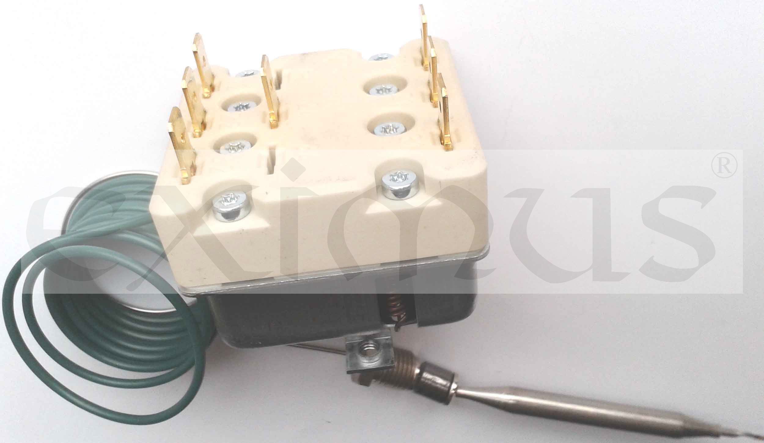 Schaltleistung: 30A 400V Fühlertemperatur min: -50 °C Fühlertemperatur max: 260 °C Abschalttemperatur: 135 °C Kapillarrohr Länge: 1490 mm Kapillarrohr isoliert: 1350 mm Fühler Durchmesser: 6 mm Fühler Länge: 73 mm Verschraubung: M9 x 1 mit Umschaltkontakt mittlere Bahn