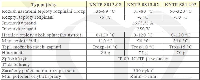 Jednopólová pojistka KNTP8814.02, pevně nastavená teplota vypnutí z rozsahu +50..+320°C,