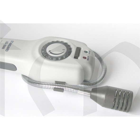 Detektor hořlavých a výbušných plynů je osazen sondou s dlouhým přívodem, aby bylo možno se dostat i do těch nejnepřístupnějších míst s možným vznikem netěsností a úniku plynu. Přístroj je vybaven nastavitelným alarmem, je snadno ovladatelný jednou rukou a má odolný kryt, který mu přidává na hodnotě. Zvuková a optická indikace napomáhají snadnému vyhledání místa s případným únikem plynu. Nastavitelný “tick” rozsah umožňuje nastavit základní citlivost pro případné odfiltrování základní složky plynu v již kontaminovaném prostředí.