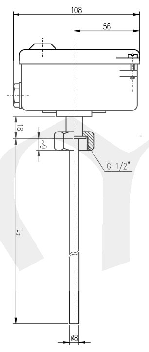 Teplotně citlivý element je stonek termostatu, tvořený u TH140 a TH143 dilatující mosaznou, u TH141 a TH144 antikorozní trubkou. Teplotní dilatace trubky se přenáší invarovou tyčí přes pákový převod na spí­nací mechanismus, který je umístěn v hlavici. Regulační knoflík pro nastavení žádané teplo­ty je rovněž uzavřen v hlavici a lze jej zaaretovat, aby nedošlo (např. vlivem otřesů) k pře­stavení vypínací teploty. Termostat TH140ZP16 je pevně nastaven ve výrobním závodě podle požadavků zákazníka. Pro připevnění termostatu v regulovaném prostředí slouží převlečná matice na stonku termostatu.