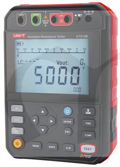 Tester izolačního odporu UT-513B 5 kV , je digitální vysokonapěťový tester izolačního odporu, navržený s několika rozsahy včetně 250V, 500V, 1000V, 2500V a 5000V. Je ideálním měřicím přístrojem pro oddělení elektrické energie, telekomunikací, meteorologie, strojovny, ropného pole, elektromechanické instalace a údržby, průmyslových a těžebních podnicích.