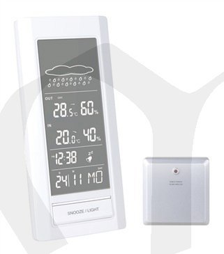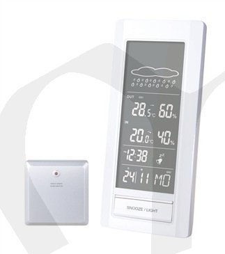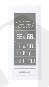 - zobrazení hodin, minut, data, dne v týdnu, vnitřní a venkovní teploty a vlhkosti, budícího času