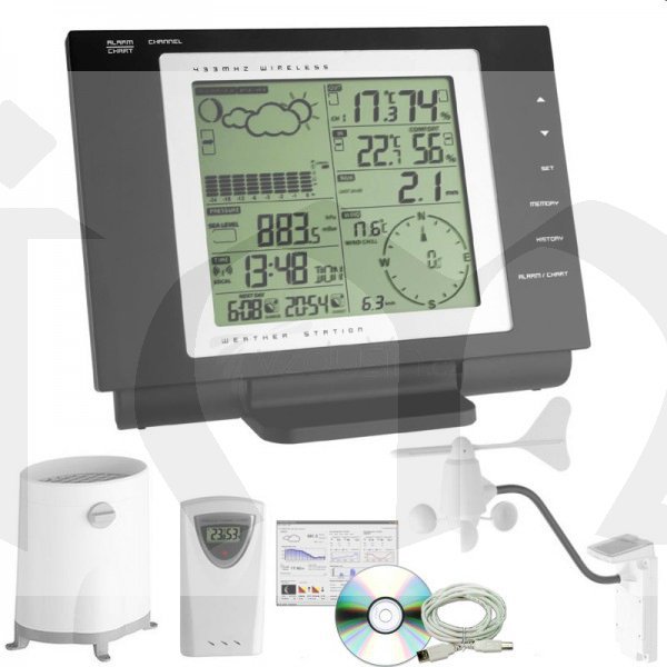 Ke stanici lze dokoupit další čidla na měření teploty a vlhkosti - celkem stanice umí komunikovat až s 5 senzory. Stanice se připojuje k PC přes USB port a její výhodou je obrovská paměť až na 3000 datových záznamů. Kdo chce znát přesný čas východu a západu Slunce bude rád, že si zde může nastavit přesnou zeměpisnou šířku a délku.