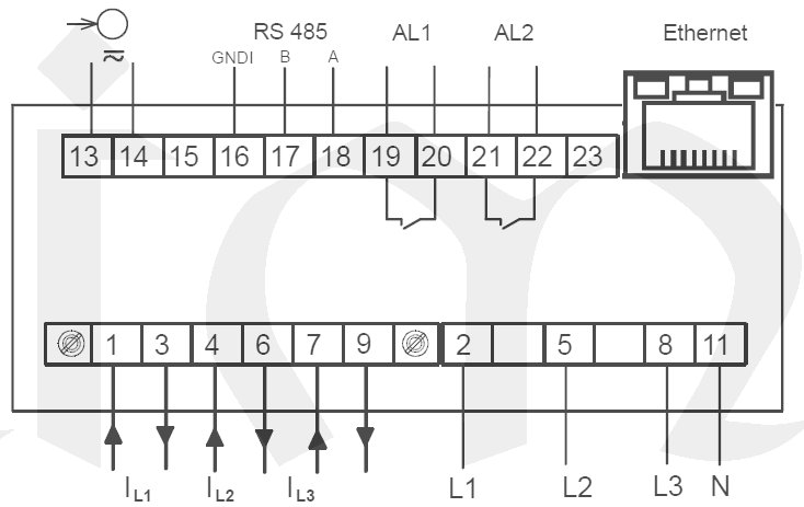 Určeno pro přímé (do 63 A) nebo nepřímé měření ve 3fázových 4vodičových / 3vodičových symetrických a nesymetrických systémech.