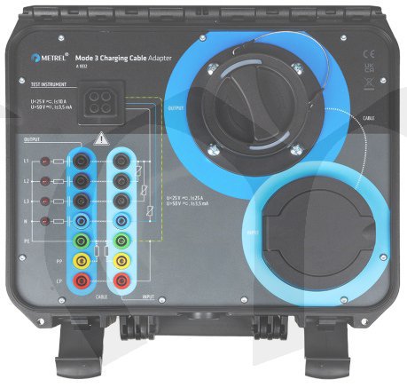 A 1832 Mode 3 se používá pro testování elektrické bezpečnosti nabíjecích kabelů režimu 3 EV s konektory typu 2 spolu s podporovanými testery METREL nebo třetích stran.