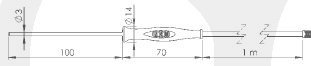 GF 1T-T3-B-BNC Ponorný snímač teploty Pt1000 tř. B, -70 ... +250 °C, pr.3mm,