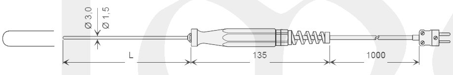 Jímka pr.1,5 mm z oceli V4A, L=130 mm, rukojeť z umělé hmoty, silikonový kabel, konektor NST1200.