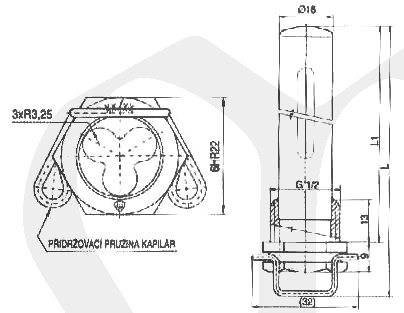 Jímku tvoří prolisovaná Cu trubka, která je na jednom konci uzavřená. Druhý konec je zapájen do mosazného hrdla se šestihrannou hlavou a závitem. Jímka může být doplněna přidržovací pružinou kapilár.