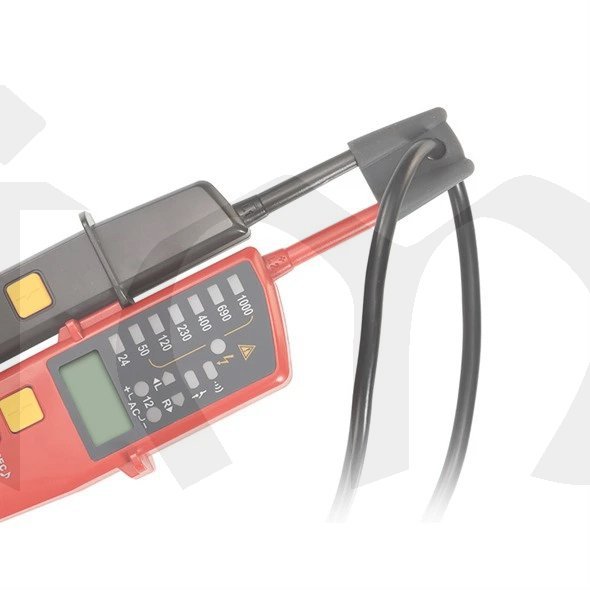 ZkoušečkaUT-18E. Tester ze série UT18 je navržen pro testování střídavého / stejnosměrného napětí (až 1000 V), třífázového napětí, sledu fází, kontinuity a dalších. Tato řada je zařazena do kategorie CAT IV 600V a splňuje standard krytí IP65. Zkoušečka napětí je navržena tak, aby usnadnila práci elektrikářům, technikům a dalším odborníkům pracujícím s elektřinou ve všech prostředích.